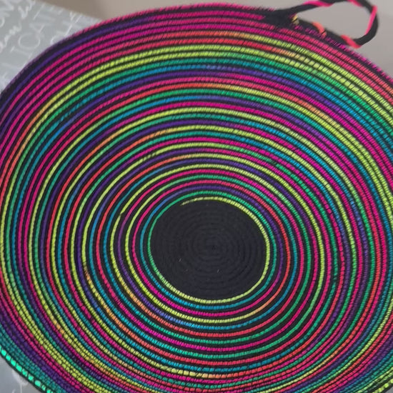 Elevate your space with this exquisite Rainbow Rope Basket, meticulously handcrafted to showcase a vibrant spectrum of colors. Its rope construction makes it ideal for stylish storage or decorative display. Perfect for adding a sophisticated touch of artistry and practical elegance to any room.